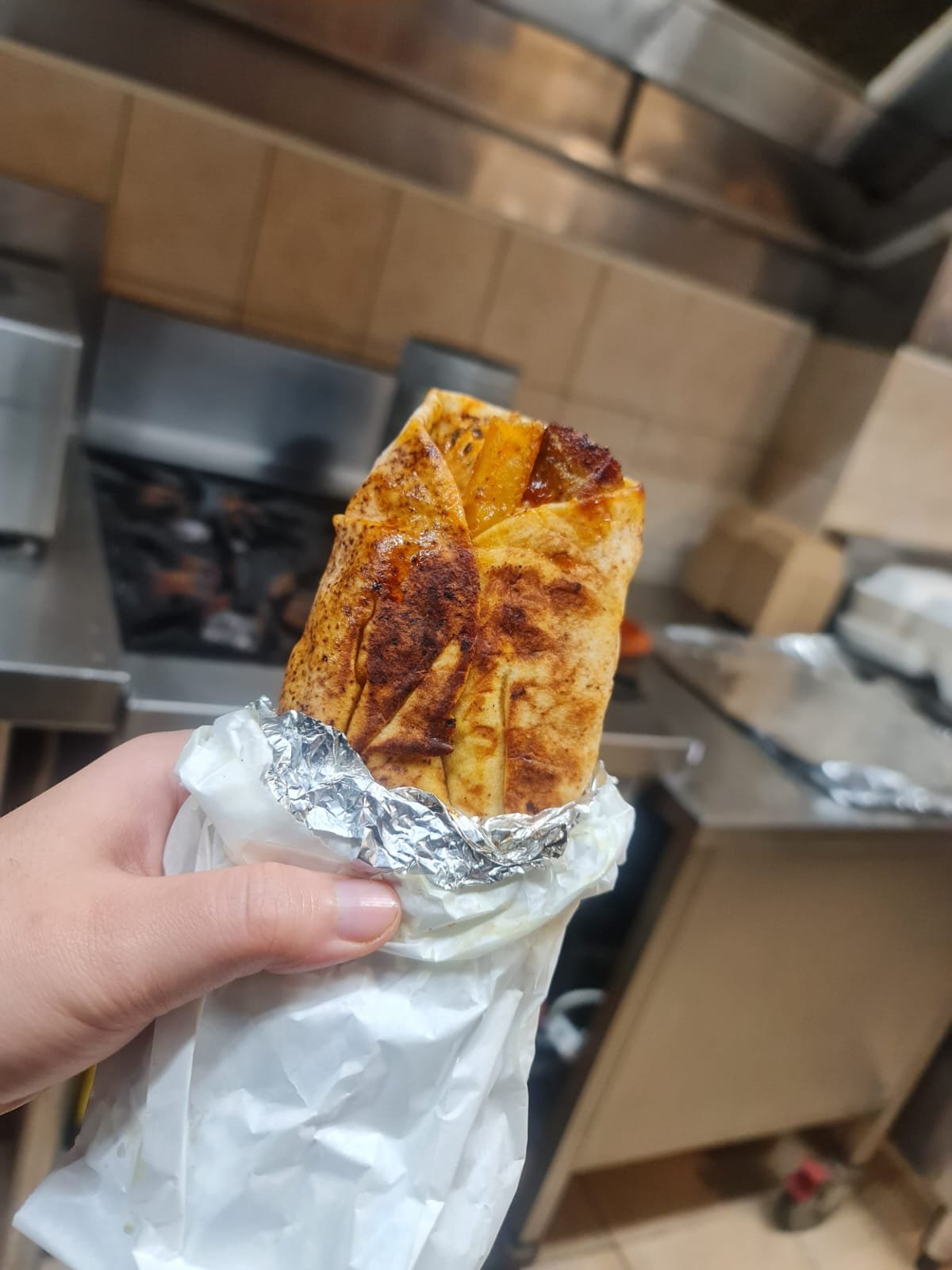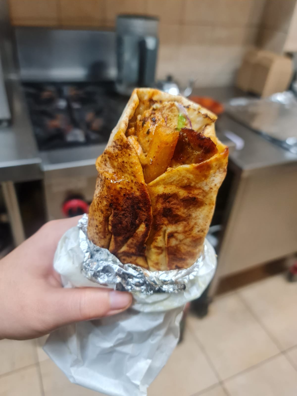 Juicy lamb strips packed with flavour and wrapped in fresh pita.